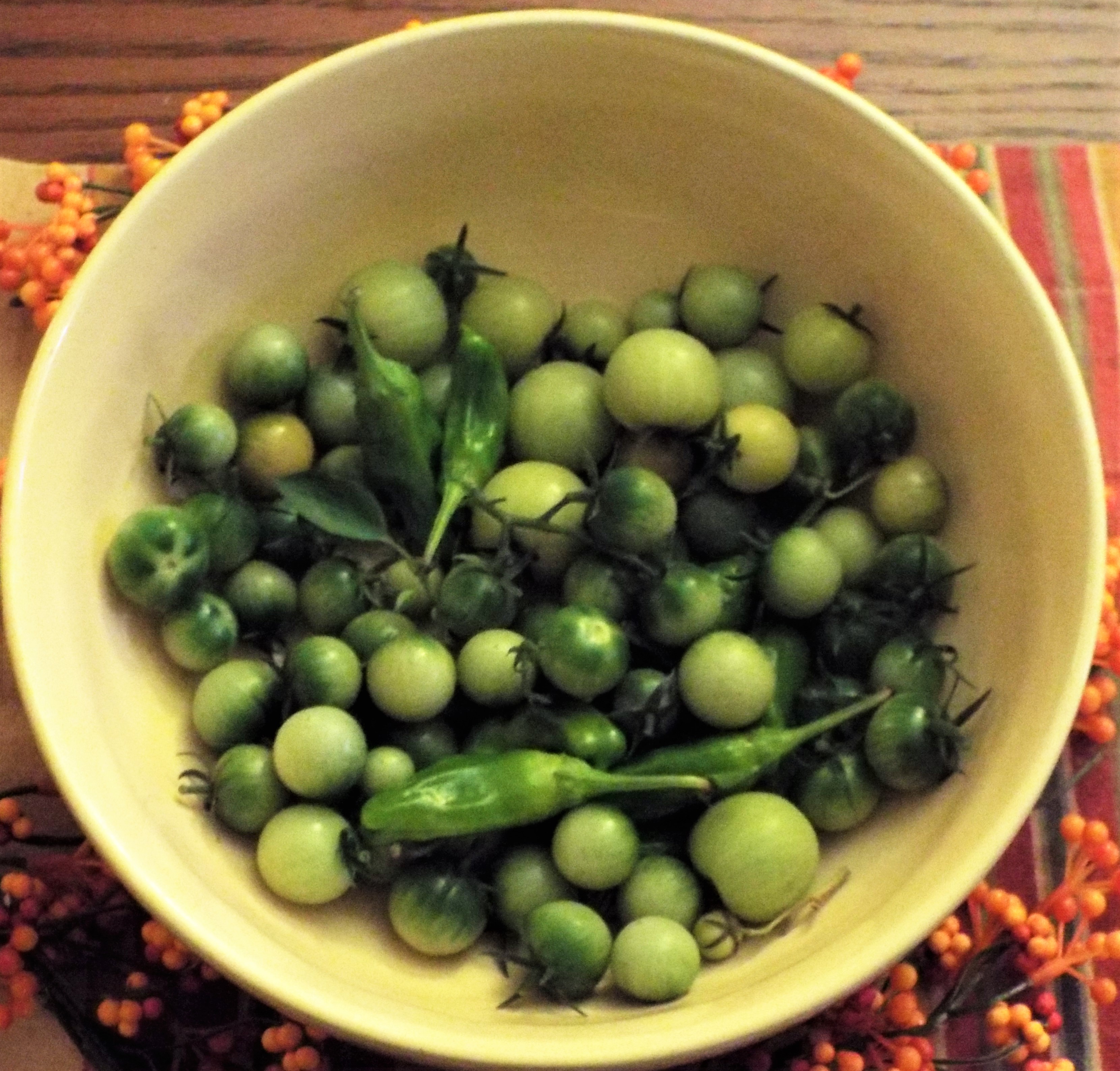 Bonus picture: We love bittersweet, a fall vine with berries which grows abundantly on our property. Bittersweet make a great fall decoration, but be warned, if you use it indoors, the berries can stain!