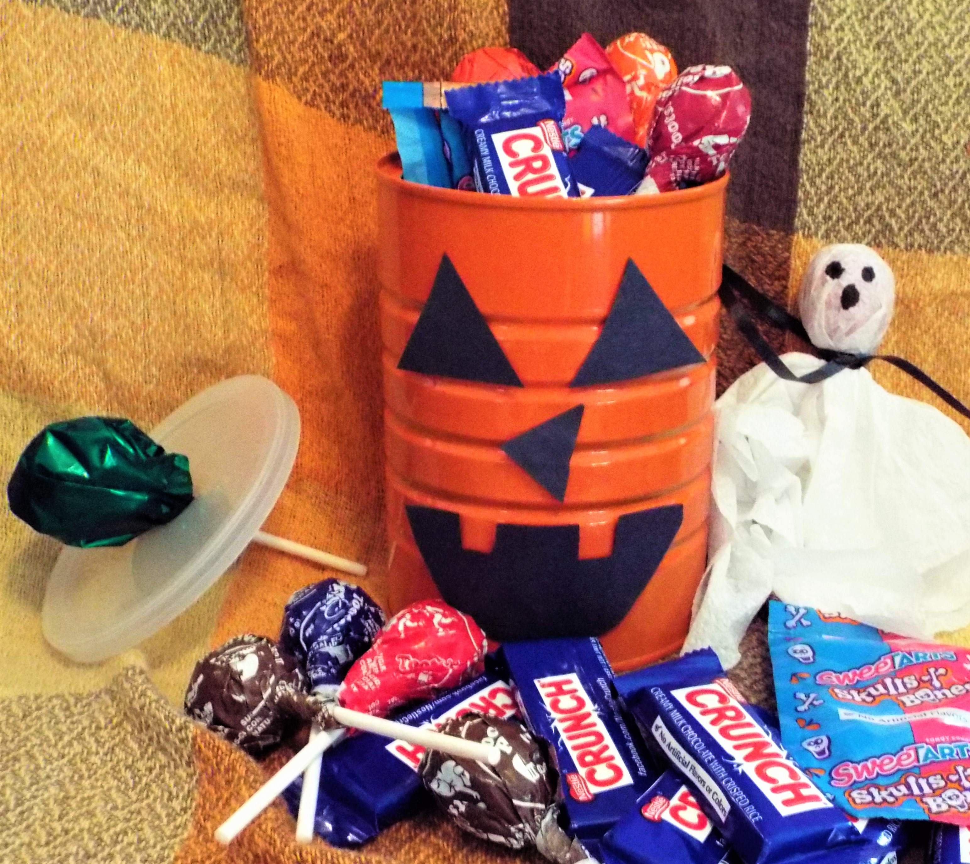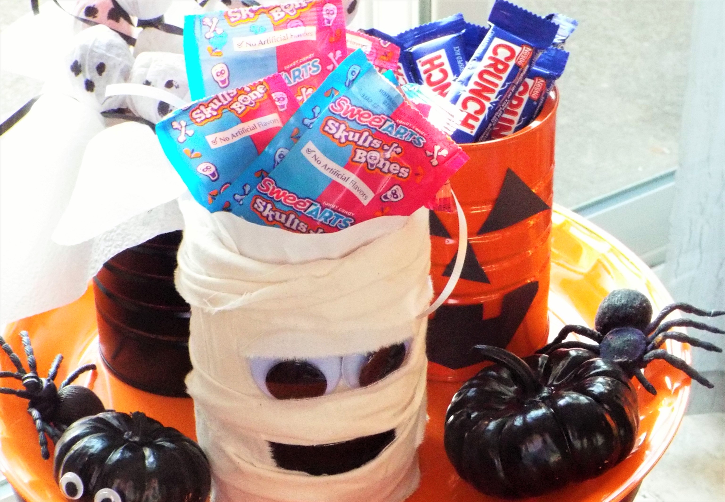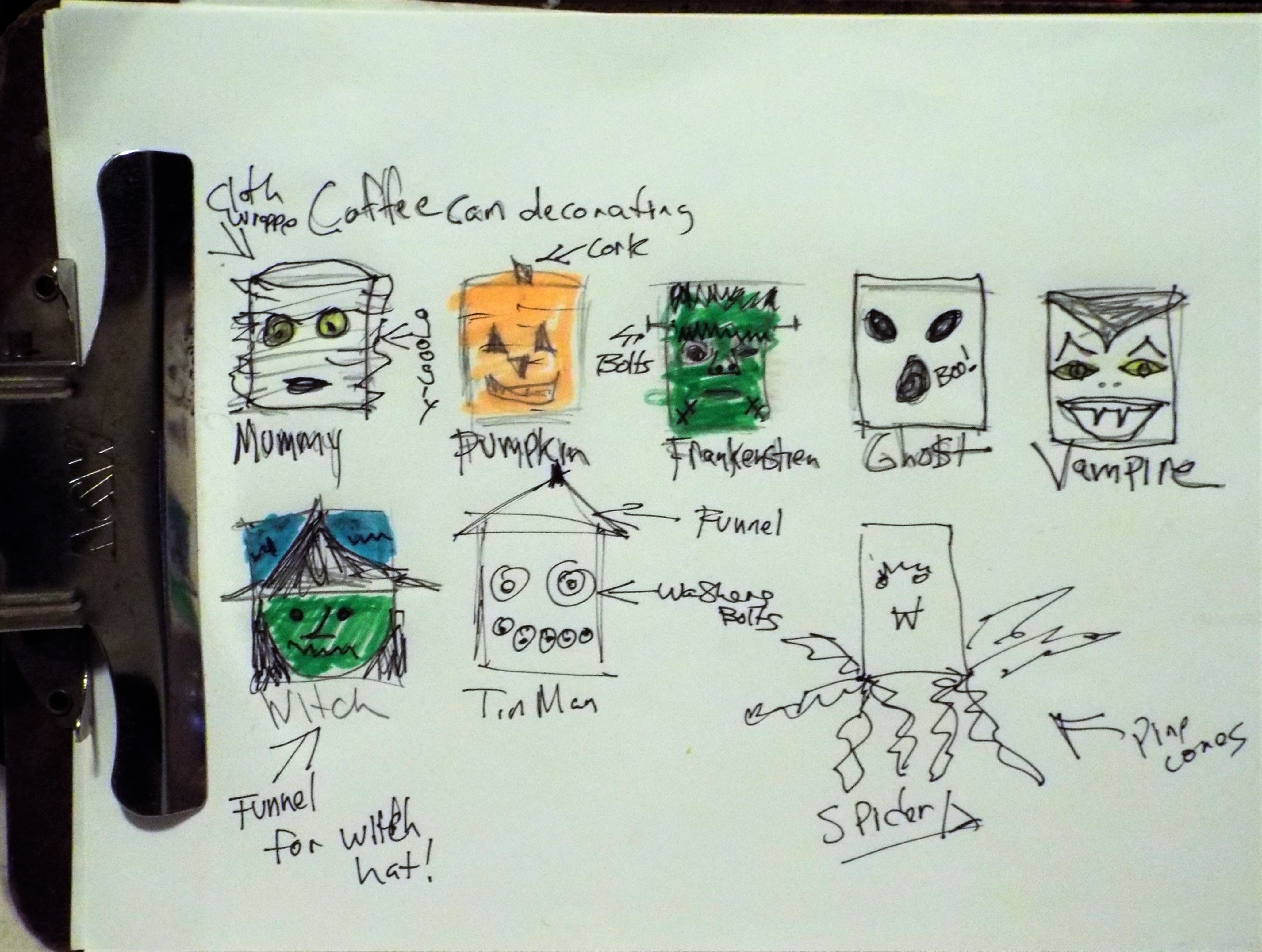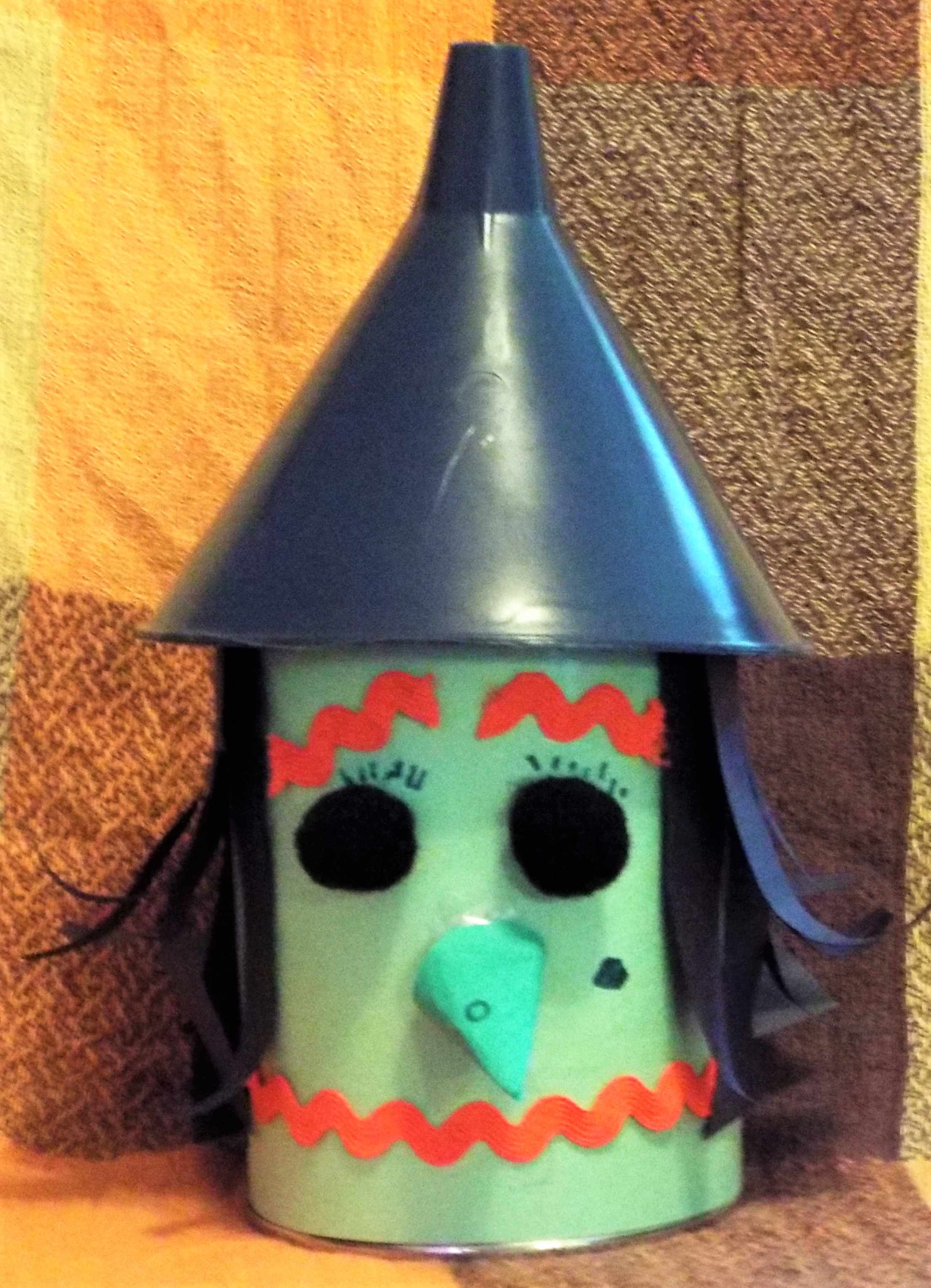 - For Frankenstein, we covered a can with construction paper. Allow at least one inch at the top of the can, cut slits and fold over top of can for a crisp fit.