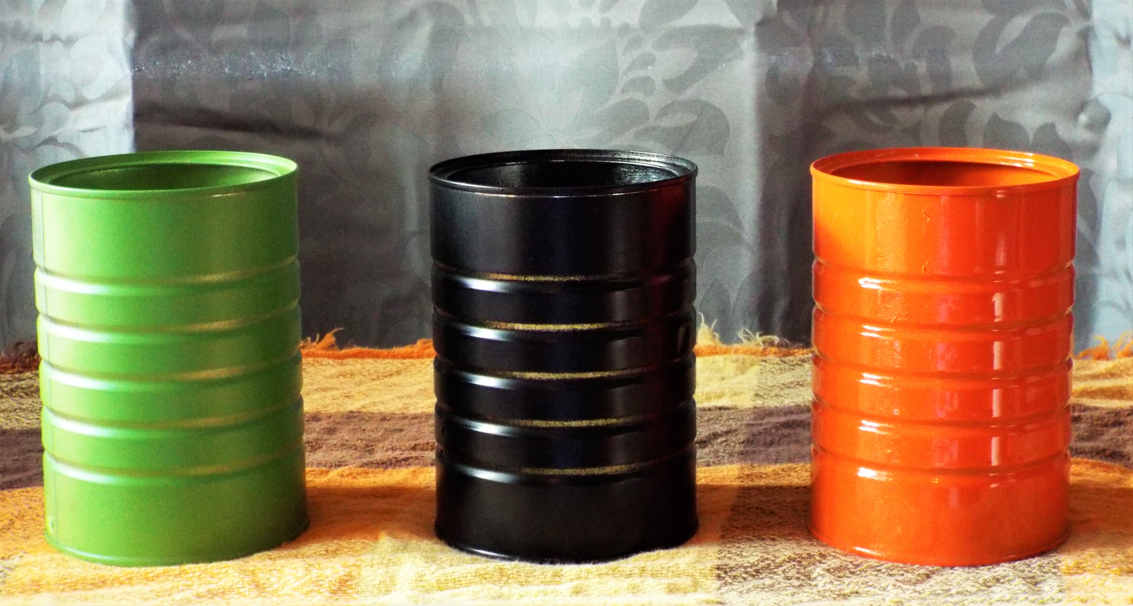 Recycle your coffee cans. Here are some fun, easy ways to decorate with recycled cans (if you don’t drink coffee, pick up some metal cans in the paint department at your local hardware store).