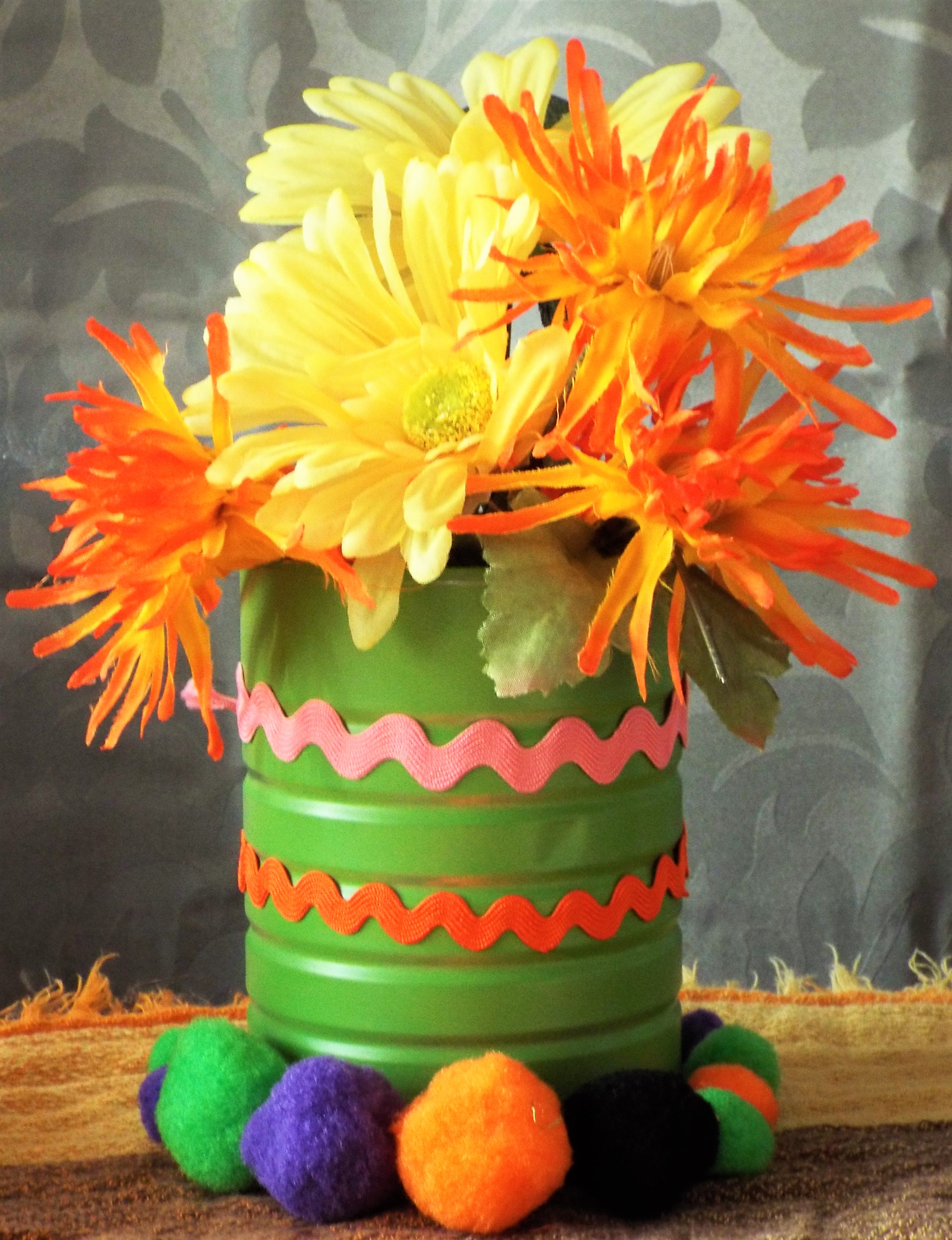 - Wrap rest of can with cloth strips and secure with hot glue or craft glue.