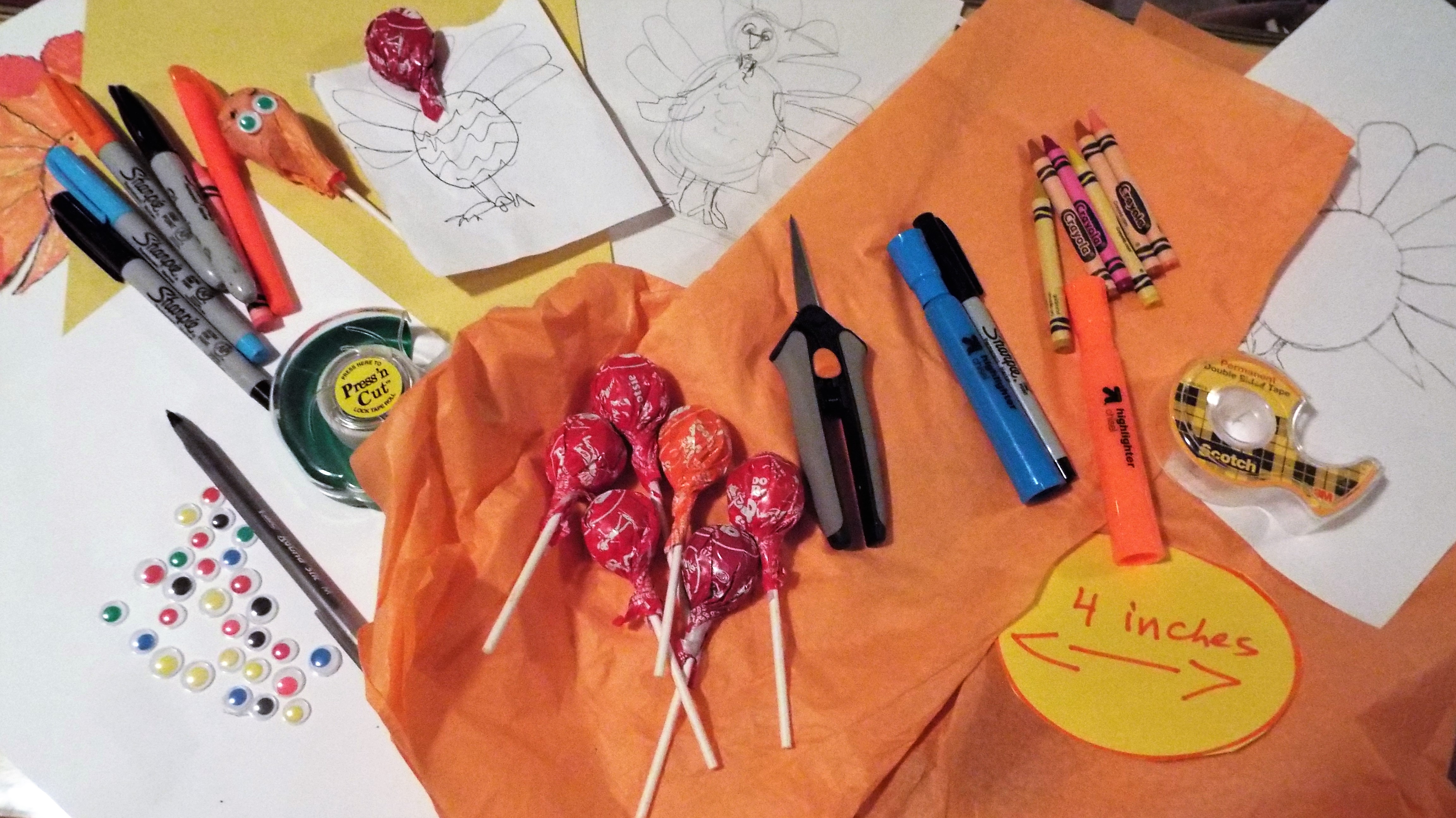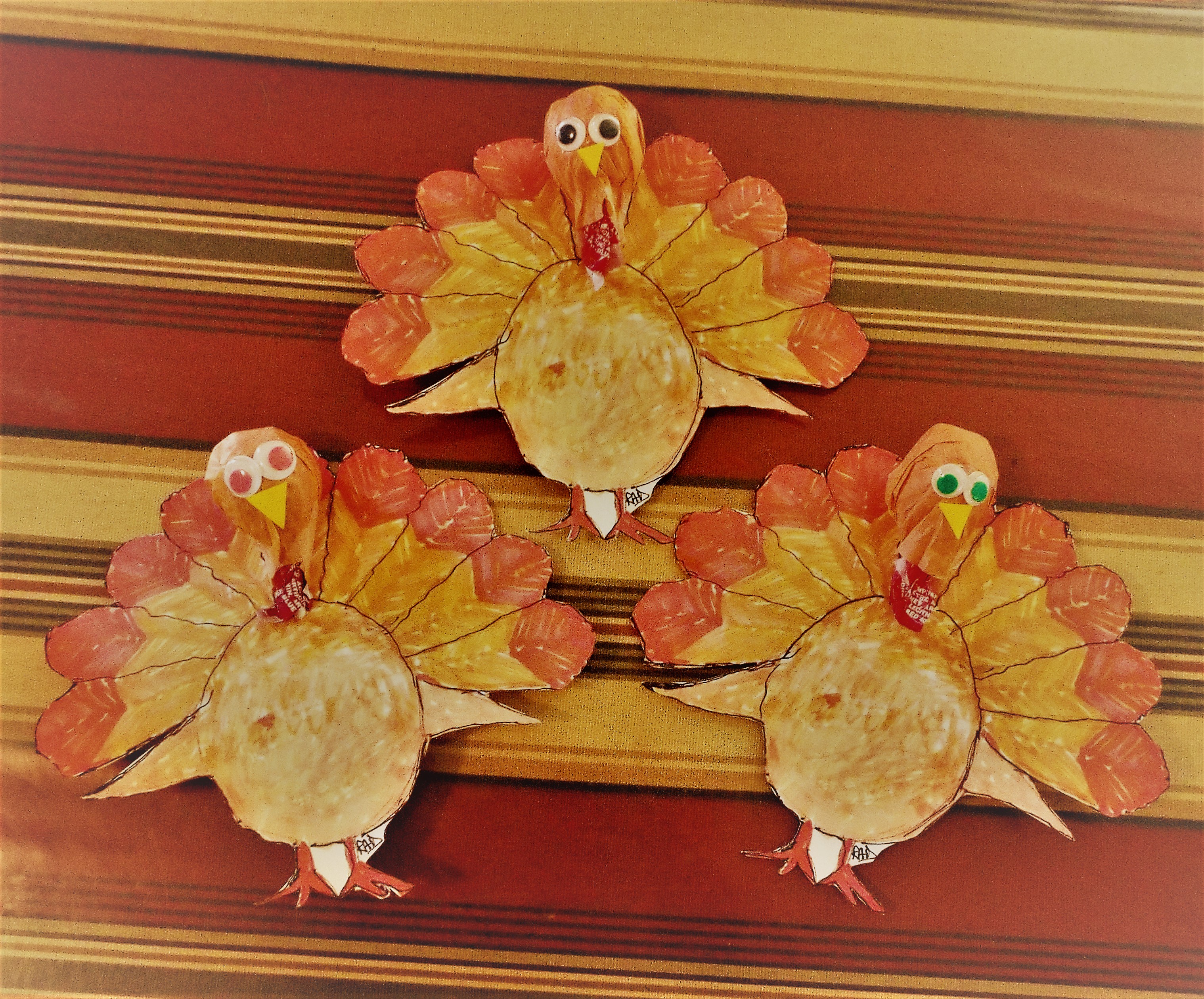 Place a small pot of shamrocks (ours were bought at Stop and Shop for $2.99) in a holiday pot picked up at a party store. Attach chocolate gold coins around the edge using double stick tape. A rainbow wall decoration adds the perfect background for our “pot at the end of the rainbow”. This works well for a party, but for a more permanent decoration, use plastic gold coins and attach them with craft glue.