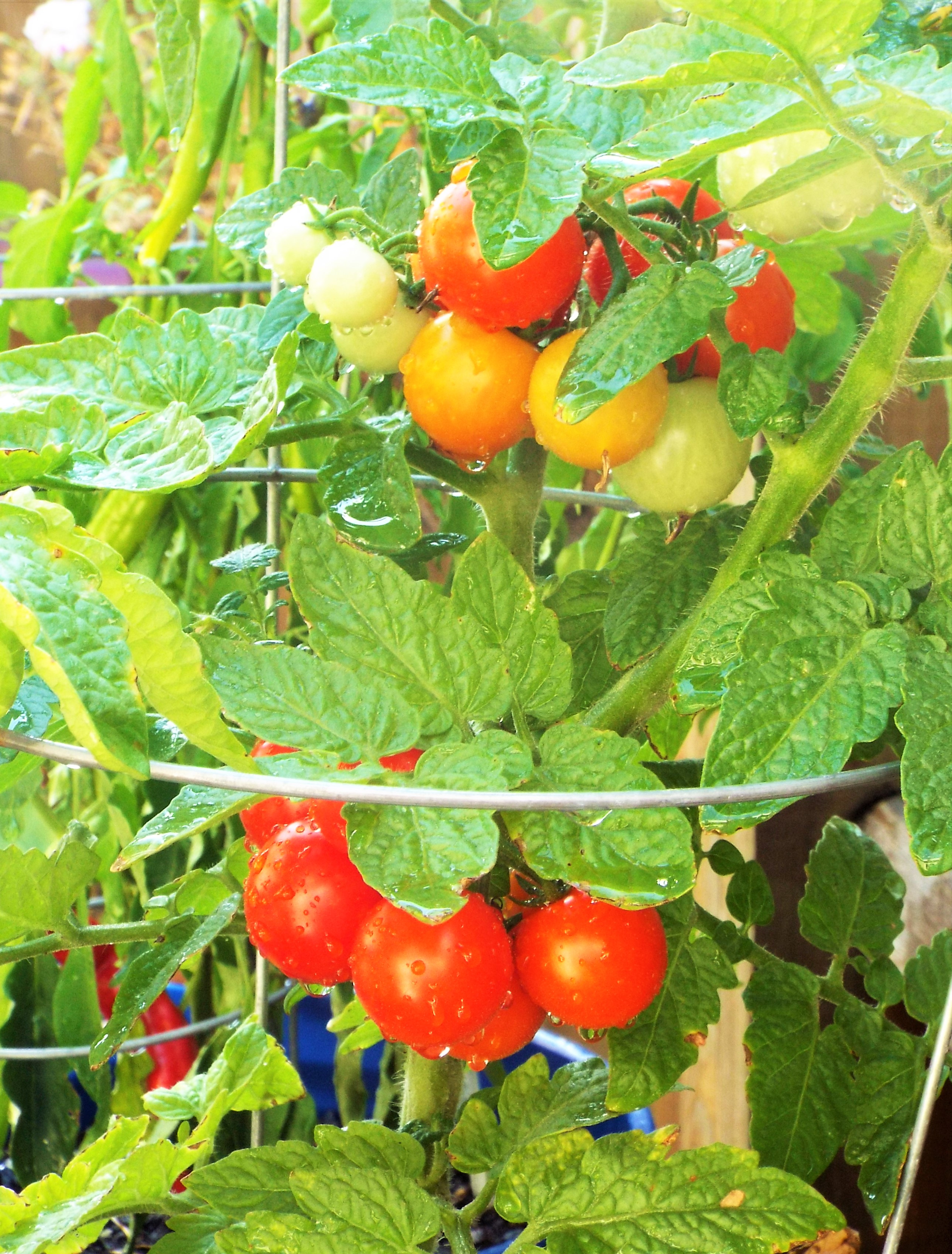 Its been quite hot lately and our garden is doing very well. We just picked our first batch of 15 tomatoes, and have had one each of our red and yellow peppers. We should have listened when the package said “spicy red peppers”!