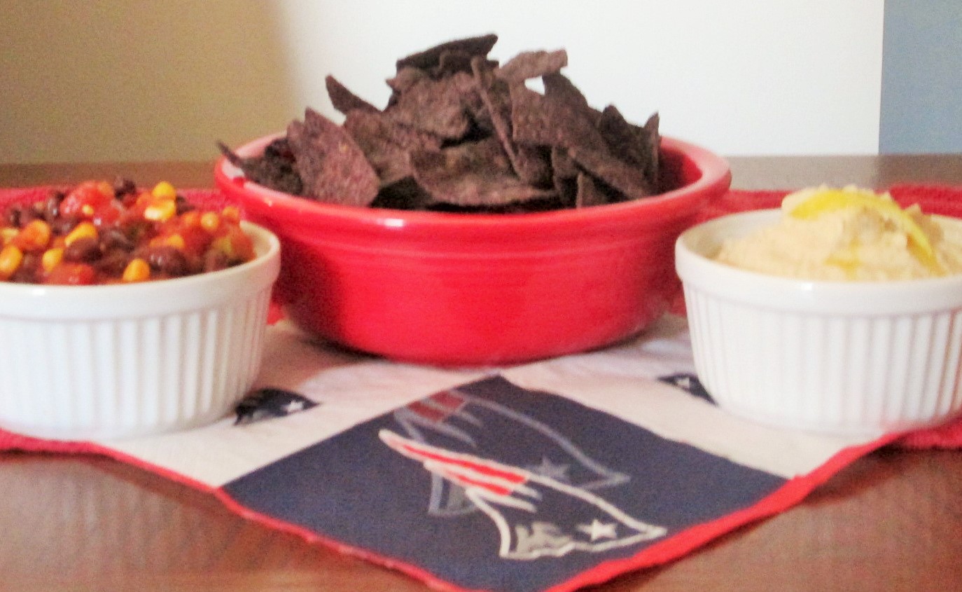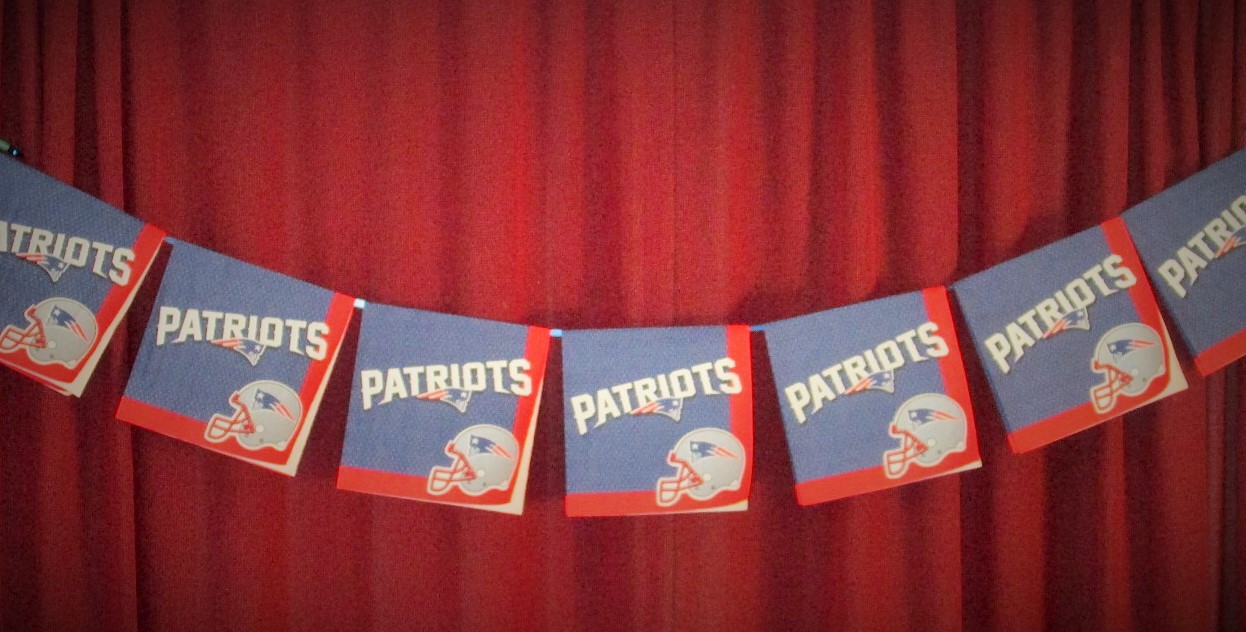 We are very excited about the Super Bowl! So much so, we kept out our Patriots Christmas ornaments as well as our Pats pom-poms and light up Patriots hat which doesn’t really show in this picture. To start out, we thought we would remind you of the snacks and decorations we suggested the last couple of weeks. Time to get busy!!